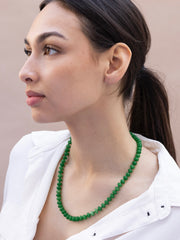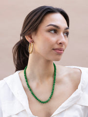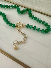 Deze prachtige gemstone ketting in een felgroene tint is een echte eyecatcher. De stenen hebben een natuurlijke afmeting van 8 x 5 mm en zijn stuk voor stuk uniek, wat elke ketting bijzonder maakt. Met een lengte van 18 inch (45 cm) en een verlengkettinkje van 10 cm valt de ketting soepel en elegant rond de halslijn. Het ronde slot en het verlengkettinkje zijn verguld op long-lasting stainless steel, voor een stijlvolle en duurzame afwerking.
