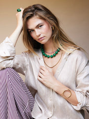 De korte ketting met grote ronde kralen van Ellen Beekmans is een echte eyecatcher. De glanzende kralen van gelakte hars met een diameter van 1,6 cm geven de ketting een speelse en stijlvolle uitstraling. Afgewerkt met subtiele gouden details, valt de ketting mooi rond de hals met een lengte van 40 cm en een verlengkettinkje van 5 cm voor de perfecte pasvorm.