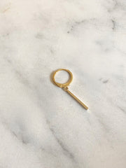 Zwaar verguld oorringetje (? 1 cm) met een minimalistisch staafje als bedeltje. De totale lengte is ca. 2 – 2,5 cm. Nikkelvrij en ontworpen in het atelier van Ellen Beekmans in Hilversum. Wordt geleverd in een gratis cadeauverpakking.