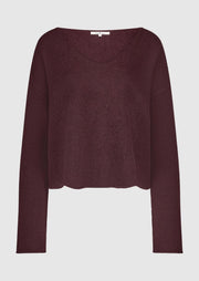 De Liv knit van Circle of Trust is een zachte cropped damestrui in een warme wijnrode tint. Met een oversized fit, v-hals, nonchalante drop shoulders en omgekrulde boorden heeft deze trui een moderne en relaxte uitstraling. Gemaakt van 75% gerecycled polyester, aangevuld met nylon, wol en spandex voor een comfortabele en duurzame kwaliteit.