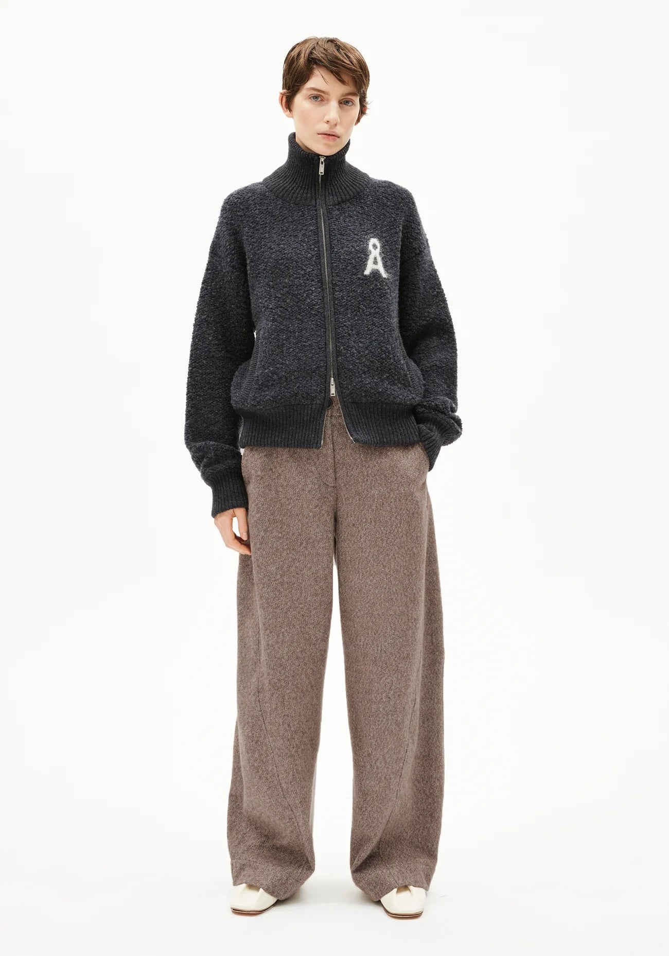 De ICONIC Å GWENAA Bouclé Cardigan van ArmedAngels is een heerlijk comfortabel vest met een moderne, robuuste uitstraling. Gemaakt van grof bouclébreisel en ontworpen in een losse, ontspannen pasvorm, voelt dit vest warm en zacht aan – perfect voor koele dagen. De opstaande kraag, ritssluiting en subtiele logodetail geven het ontwerp een minimalistische, eigentijdse look.