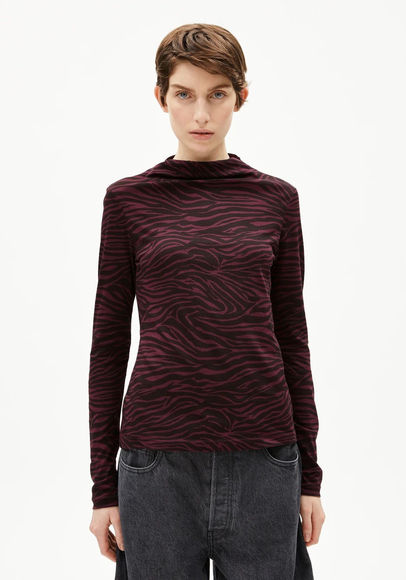 De CALUNAA ZEBRARAA Top van ArmedAngels is een stijlvolle eyecatcher die moeiteloos combineert – verkrijgbaar bij LEEF mode en accessoires Meppel, online en in de winkel.
